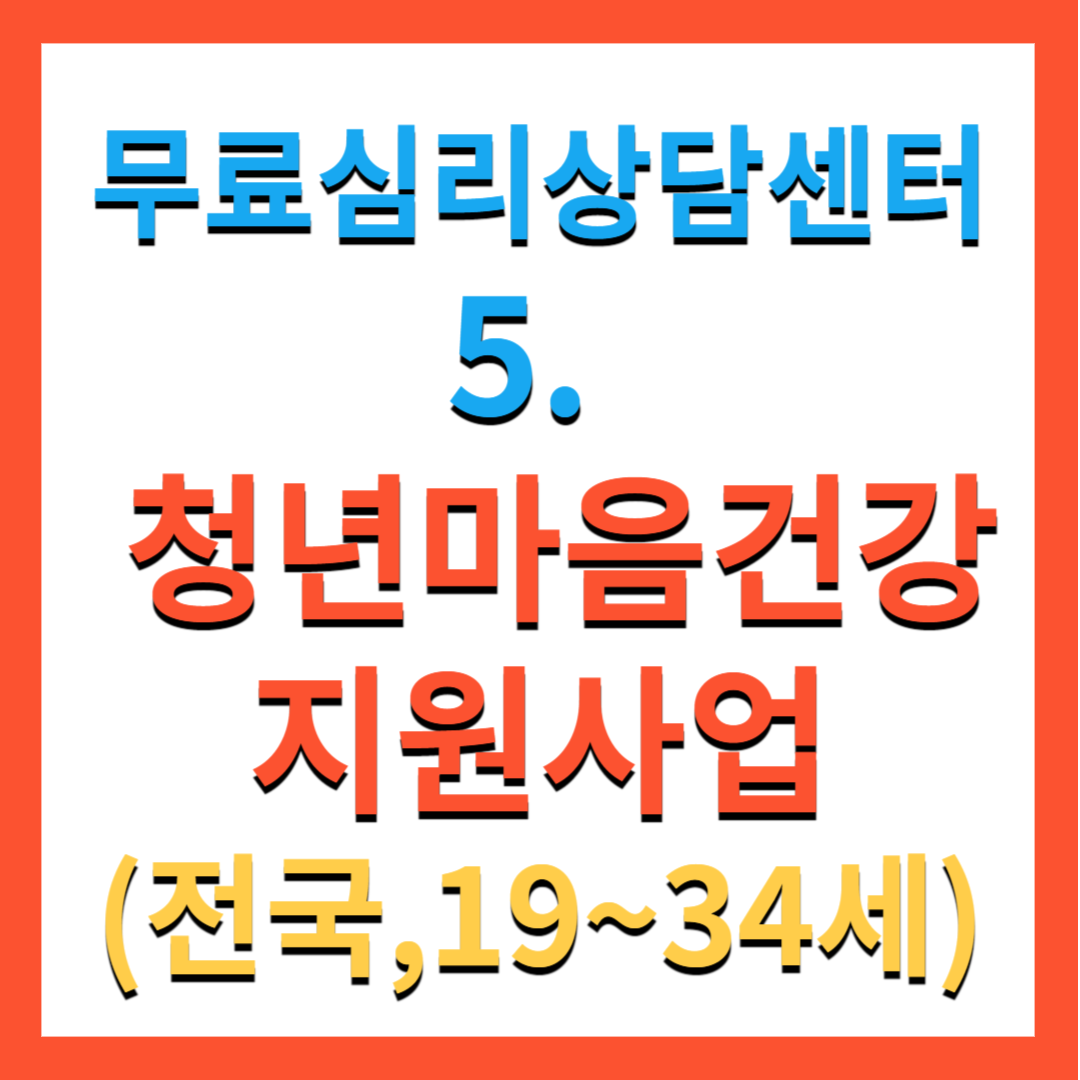 무료심리상담센터를 차례대로 소개해드리고 있습니다. 오늘 소개해드릴 무료심리상담센터는 청년마음건강지원사업입니다. 만 19세~34세 이하의 사람이라면 전국의 누구나 이용할 수 있습니다. 대상에 따라 무료, 혹은 1/10 수준의 비용으로 초대 10회의 전문심리상담서비스를 받을 수 있습니다.