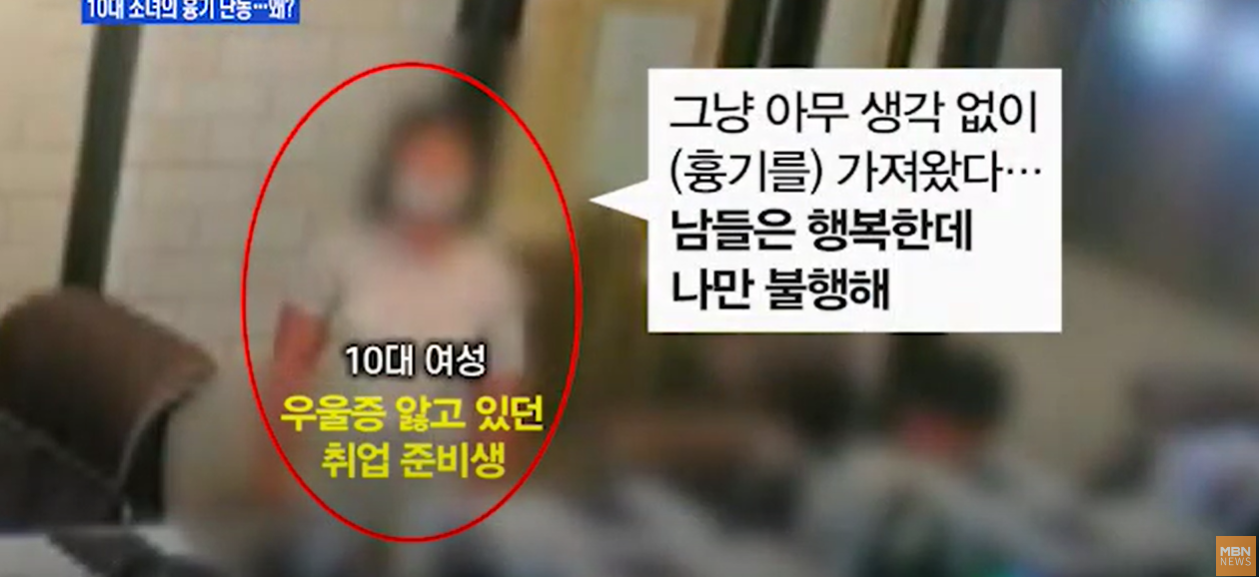 3년 전에도 한 PC방에서 10대 소녀가 칼로 묻지마 폭행을 저질러서 3명이 중경상을 입었던 사건이 있습니다. 그녀에게도 이런 범행을 저지른 이유를 물어봤더니 "남들은 다 행복한데 나만 불행한 것 같다" 라고 이야기했습니다.
