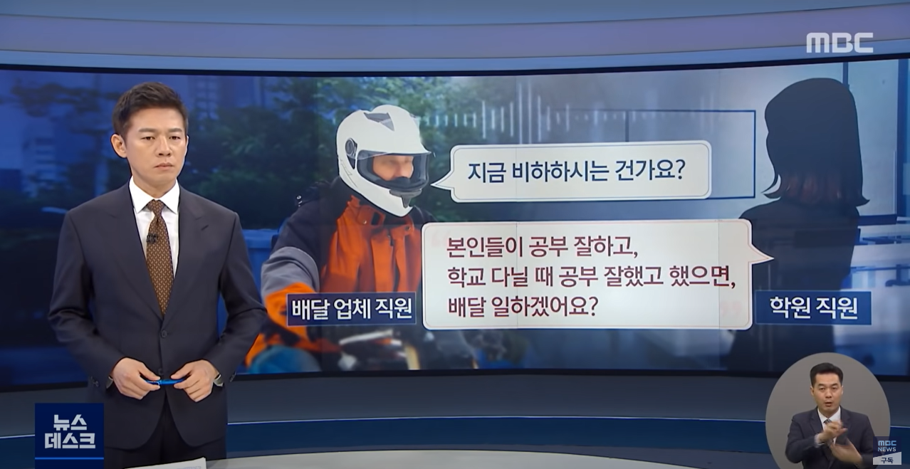사회적으로 문제가 됐던 유명한 어느 대형 학원 직원이 배달기사에게 했던 말입니다.