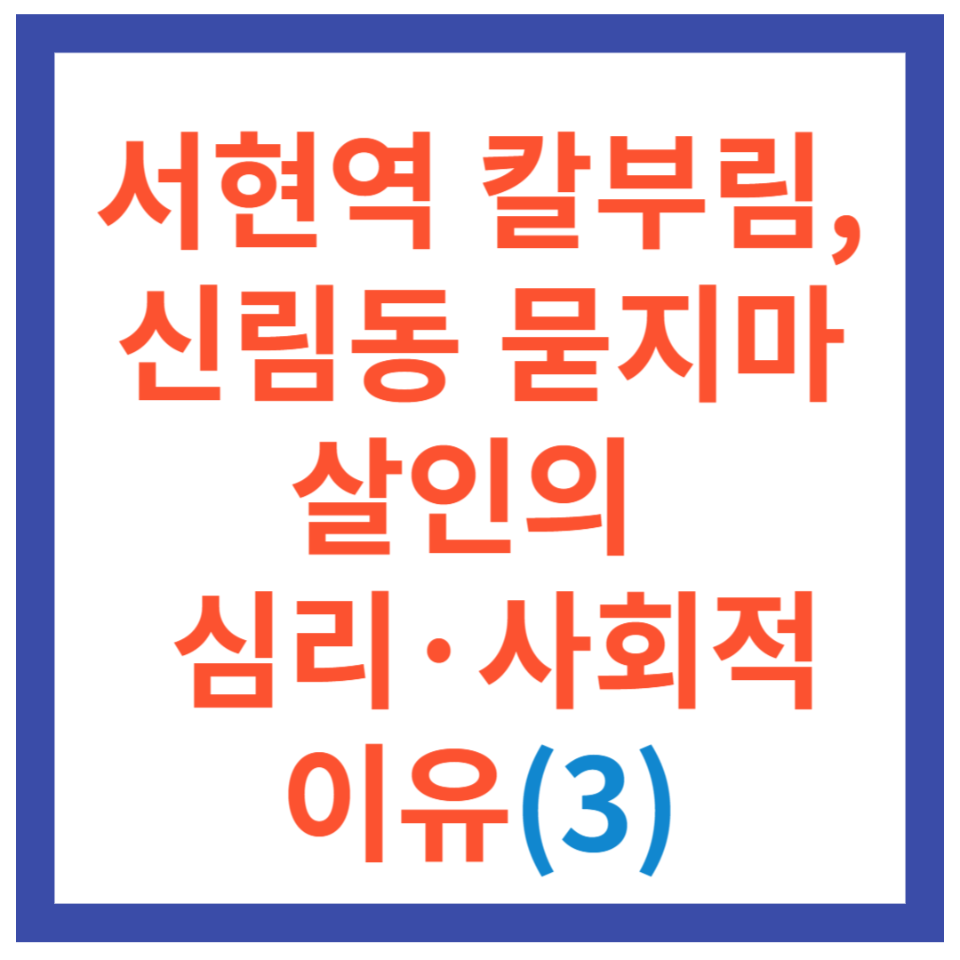 첫 번째 글에서는 서현역 칼부림, 신림동 묻지마 살인의 이유를 사회적 문제의 차원에서 근본원인을 찾아야 한다고 말씀드렸습니다.