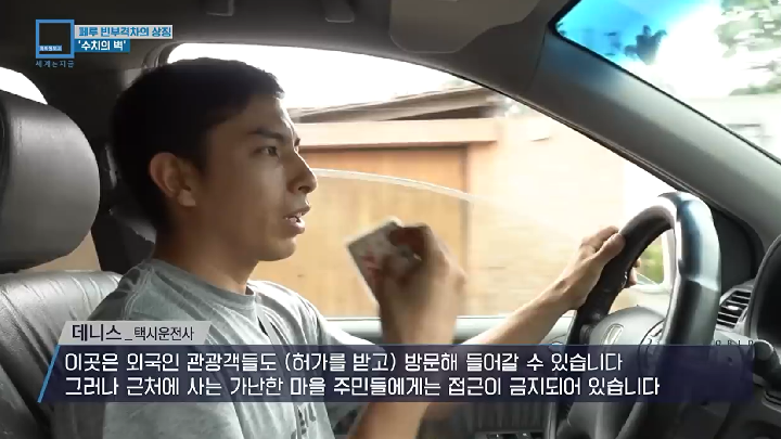 높이 3M, 길이 10KM에 달하는 철조망이 쳐진 벽이 부자들이 사는 지역과 가난한 하층민들이 사는 지역을 막고 있습니다. 헌법재판소는 180일 내로 이 벽을 허물라고 했지만 지자체에서는 돈이 없다는 이유로 실행하지 않고 있습니다.